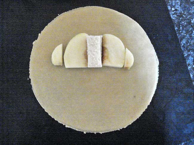 The sweet filling at the right is apple, sultana, brown sugar and ground